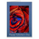 Ideaal voor Valentijnsdag met een origineel kunstontwerp, van het schilderen van de waterverf door Sacha Grossel van groot, dicht focus, macrostijl rood met blauwe hoogtepunten. Deze traditionele Engelse bloem met krimpenbladen heeft een helder, intens kleurenontwerp dat de abstractie van de botanische vorm en thema's van liefde en passie overbrengt.