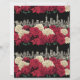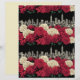 This design combines classic rose florals with an urban skyline, creating a striking contrast between organic shapes and city structure. The deep black background intensifies the red and cream tones, giving the pattern a dramatic, high-impact look. The repeating layout makes it ideal for statement pages, themed projects, or designs that need a strong visual presence.