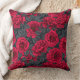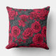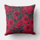 Red roses with gray leaves on black kussen