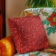 Een goed stevig kussen dat uitstekend past in ons Zen, maar toch kleurige interieur en een ander kussen van dezelfde ontwerper. Mooie kleuren, warmer dan op de afbeelding.