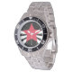 Rode ster met wit burst design op een zwarte achtergrond. Aanpassen om jouw naam, monogram of eigen tekst toe te voegen.