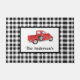 rode vrachtwagen op een zwarte en witte buffelpleister/controleachtergrond. Pas je eigen naam aan.