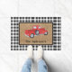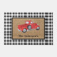 Red Truck Black & White Check Burlap Monogram Deurmat