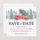 De Robuuste winterbruiloft redt de datumkaarten met een eenvoudige witte achtergrond, waterverf kerstbomen, een rode vrachtwagen, een kerstboom en een traditionele redding van de date-sjabloon die gemakkelijk te personaliseren is.