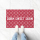 Onze slaapdeurmat versierd met een rood-wit patroon en jouw tekst in schooltype belettering. Uitzicht onze volledige lijn van aangepaste producten thuis in onze Zazzle winkel.