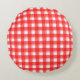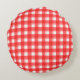 Een ronde kussens met een schattig retro-land rood en wit vlakpatroon met overlappende dikke en dunne strepen. Pas het aan om jouw naam of bericht toe te voegen, zelfs sparen uw ontwerp voor later.