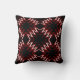 A symmetrical, modern art motif is featured composed of an abstract diamond mosaic tile pattern of red and white diagonal squiggles on a black background, creating an overall mosaic look, inspired by the Southwest and MCM styles. This is a vivid and contemporary design, which evokes a tribal art or mosaic tile pattern, and contributes an unconventional, individualistic, and warm look for living area, bedroom, workspace, terrace, or patio decor, inspiring a feeling of comfort, relaxation and tranquility. There is much decorative potential in this accent piece, which fits into numerous design styles (trendy to traditional) from country farmhouse to suburban ranch to rustic hacienda to urban loft/high rise to retro/vintage.