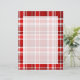 Dit rode en witte briefhoofd heeft een zich herhalend gecontroleerd/tartan patroon dat licht getextureerd is. Het is een helder, stijlvol patroon dat je brieven laat uitkomen. De middenruimte is gevuld met een semi-transparante witte ruimte zodat u ruimte hebt om te schrijven.