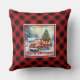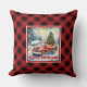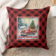 Refined red truck holiday scene rustic red green kussen