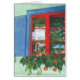 schilderen van een kleurrijk venster vol reflecties. De vensterdoos loopt met bloemen over. Mooie serene scène.