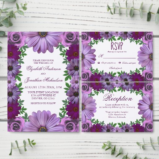 Regal Paars Floral Rehearsal Dinner Kaart