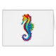 Kunstzinnig getekende, heldere, regenboogkleurige, veelhoekige zeepaard op witte achtergrond. Helder tattoo.