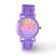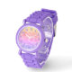 De moderne distressed grunge stijl lettertype past bij het thema van water. U kunt de medium paarse kleur van de "spash nummers" aanpassen Een eenvoudige zwembadfoto is violet getint met de Ipanema regenbooggradiënt of ombre fotofilter toegepast met behulp van het systeem hier. U kunt mijn foto vervangen door uw eigen creëer om uw eigen aangepaste klok gezicht foto polshorloge.
