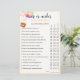 Voor verdere aanpassingen kunt u een e-mail sturen naar hi.yellowmoonatelier@gmail.com. Perfect voor het vieren van een jongetje of meisje, breng extra plezier in je baby shower met deze Rainbow Balloons Over Under Shower Guessing Game van Yellow Moon Atelier. Deze game past precies in het Some Bunny Rainbow Balloons-Collectie van Yellow Moon en heeft een kleurrijk waterverf-ontwerp van een konijn met slappe oren die over een mand gluren, omringd door regenboogkleurige ballonnen. Dit interactieve spel daagt gasten uit om te raden of verschillende baby-gerelateerde items of statistieken 'over' of 'onder' zijn. De gast met de meest correcte antwoorden wint! Zorg ervoor dat je van tevoren de juiste antwoorden weet en vergeet niet om een leuke prijs voor de winnaar te pakken! Dit heerlijke spel voegt een extra vleugje plezier en opwinding toe aan je baby shower. Vergeet niet om het Some Bunny Rainbow Balloons Baby shower Collectie te verkennen voor meer coördinerende items om je feest te voltooien!
