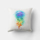 Groot, lichtgevend, artistisch getrokken, heldere kwallen, met lange tentakels op wit, overschilderd met een veelkleurige achtergrond van de waterverf. Regenboogkwallen.