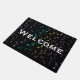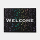 Rainbow-Muzieknoten op Black Welkom Mat. Blauwe groene paarse gouden roze en lavendere muzieknotities die op een zwarte mat zijn gestrooid met aanpasbare welkomsttekst. Ideaal voor buiten je studio of thuis en een geweldig cadeau voor je favoriete muzikant of muziekliefhebber. De tekst kan blijven zoals hij is of veranderen in wat je maar wilt.