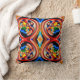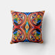Regenboogcirkelvormige wervelingen fleuren dit vrolijke werpkussen op.