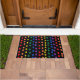 Digitale abstracte afdruk. Regenboogstippen op zwart.