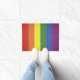 Kleuren van LGBT (lesbiennes, homo's, biseksuelen en transseksuelen): versiering van de regenboogvlag op gestreepte achtergrond