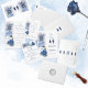 Delaat blauwe en witte rozen met Bridgerton Regency-stijlaccenten omringen twee klassieke cameeën van een vrouwelijke en een mannelijke figuur, allemaal geplaatst tegen een scherpe witte achtergrond.
