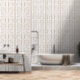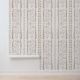vertical stripes with stylized lotus, papyrus floral, leaves, and geometric shapes motifs evoke a sense of natural symmetry and sophistication.