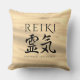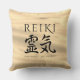 Viel de oude Japanse kunst van het genezen met deze exotische werpkussens, die de elegante kalligrafische lettervormen voor Reiki bevat, gestileerd op het verschuiven van zand aan beide zijden. Ontwerp © W.H. Sim. Zie meer op zazzle.com/expressionsoccasions