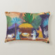 Celebrate the reason for the season with our beautiful nativity scene Christmas pillow. The religious Christmas card features a hand painted nativity scene purple blue pink orange and green. Original artwork by Caroline Bonne Müller