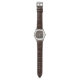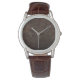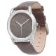 Un reloj simpel la correa es cuero marrón, el fondo también es marrón