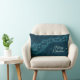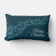 Een kussen met een afbeelding van de kerstman in zijn slee die door zijn rendieren wordt getrokken. Kleine sterren strompelen de nachtelijke hemel. retro gevoel. Tekst op de voorkant zegt: "Vrolijk kerstfeest".