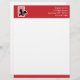 Briefkoppen voor cateringbedrijven, restaurants en levensmiddelenbedrijven. Het ontwerp omvat chef-kok met afgedekte schaal, rode en witte ingedrukte achtergrond aan de rode rand. Eenvoudig aan te passen met uw details.