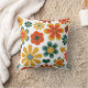 Deze retro vroege 70's kleurrijke bloemmodevormgeving in het behangselpapier past deze ontwerperkussen aan in een typisch kleurenpalet van 70's. Deze kussen zullen een stijlvolle aanvulling zijn op elk interieur, of het nu modern, retro of minimalistisch is. © Julie McIver