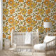 Retro 70s Bloemen Sinaasappel Gouden Patroon Behang