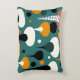 Infuse your home with the playful, "Googie" aesthetic of the 1950s with this "Retro Shapes" throw pillow. Featuring stylized, mushroom-like silhouettes and floating atomic orbs, this design captures the optimistic energy of the space age. The vibrant palette of ochre yellow, muted coral, and crisp white pops against a sophisticated deep teal background, while sharp black accents provide a bold graphic contrast. This whimsical yet refined pattern is a perfect conversation piece for any mid-century modern lounge or creative studio.