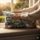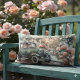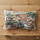Retro Auto & Bloeiende Boetiek Scene Kussen