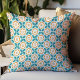 Retro Blauwgroen Aqua Sinaasappel Bloemen Geometri Kussen
