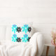Make a bold statement with our "Retro Bloom Duo - Bold Contrast" pillow design. This eye-catching pattern features four dynamic clusters of stylized flowers, each centered around a large, vibrant turquoise bloom. These are strikingly contrasted by two smaller flowers in deep black and bright blue, creating a modern and energetic visual. The clean, graphic style gives it a distinct retro flair, while the strong color combination ensures it will be a captivating focal point in any contemporary or eclectic setting.