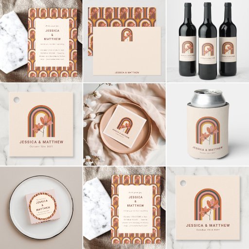 Retro Rainbow Floral Arch Wedding StationeryOntworpen door Opal Ellery