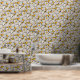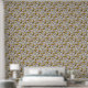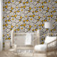Retro boho zwart geel botanisch abstract bloemmoti behang