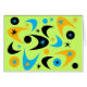 Retro gele zwarte en aqua starburst boomerang card. De achtergrondkleur kan worden aangepast.