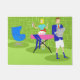 Dit Cartoon-paar van Retro bij Thuisdeur Mat is verbluffend heet! Het is voorzien van een stel uit 1950 dat klaar is voor de dag. Ze staan in een levendige groene kamer met een groene muur achter hen. Aan de zijkant is een heldere blauwe eierstoel. Een blonde vrouw zit achter een roze strijkplank met een ijzeren stang. Ze draagt een eenvoudige turkooisjurk die geschikt is voor een kroning. Rond haar taille is een flouncy, wit pron met een rode tailleband en accenten. Haar turkooisschoenen passen perfect bij haar jurk. Natuurlijk wel! De man van de vrouw staat aan de zijkant en leest een krant. Hij draagt een lichtblauw shirt, een oranje stropdas en een koninklijk blauw jasje. Hij zou er allemaal klaar voor zijn om te werken als zijn bijpassende koninklijke blauwe broek niet over de strijkplank zou worden gegooid. Hij kan niet zo goed naar zijn kantoor gaan waar hij mysterieuze taken zal uitvoeren die niemand goed begrijpt in zijn witte boxershorts. Oh, mijn! Wat zou er dan gebeuren als hij dat durfde proberen!