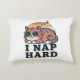 A cozy rectangular pillow featuring a sleepy retro cat with a bold nap-loving attitude.