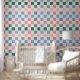 Retro Checkerboard Plaid (roze, groen, blauw) Behang