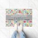 Retro coffee Doormat with pots and cups with squares in 1950s vintage kitchen colors. Some items have classic atomic designs. Great for someone that loves 50s themes or mid century modern style. This would be perfect for a retro theme décor. You can make the pattern bigger or smaller. Here are some colors you can use to match the pattern if you want to add a your name or initial. Grey: a5a5a5 Red: bc0a1b Green: a9cca2 Pink: f3c2c8 Blue: 81c3cf