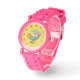 Retro style peace sign with flowers and heart center and heart clock face in schaduwen pink. Personalize with name.