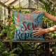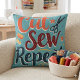 Retro "Cut Sew Repeat" naailiefhebber ontwerp Kussen