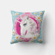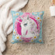 Retro eenhoorns en madeliefjes patroon op blauw kussen