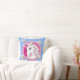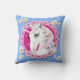 Retro eenhoorns en madeliefjes patroon op blauw kussen