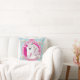 Retro eenhoorns en madeliefjes patroon op blauw kussen