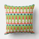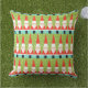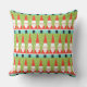 Hoe je het ook bekijkt, dit Retro Geometric Santa Sierkussen is puur vakantiewaanzin. Het zijn rijen Santas. Nee, het zijn rijen kerstbomen. Nee, het zijn rijen Santas gevormd als kerstbomen en rijen roomgroene kerstbomen met witte poka stippen. Het is kitschy. Het is kleurrijk. En als je je niet in de vakantie-geest steekt, is er zeker iets mis met je! Elke identieke driehoekige kerstman draagt zijn merk rood en wit pak en pet. Elk pet heeft een gele sterburst bovenaan, die dient als tassel voor de hoofdkleding van de kerstman en een ster voor een kerstboom. Oude Saint Nick heeft een goed gegroeide witte baard, een rode neus en vrolijke gebogen ogen. De zwarte laarzen van elke Kerstman dienen ook als boomstam aan een kerstboom. Waar de voeten van de Kerstman en de boomstammen elkaar ontmoeten, is er een streep van middeleeuwse geïnspireerde aqua. Een aankoop van dit product is gewaarborgd om u van de ondeugende lijst te houden ongeacht wat u hebt gedaan!