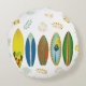 Retro gouden tropische kustsurfplanken rond kussen